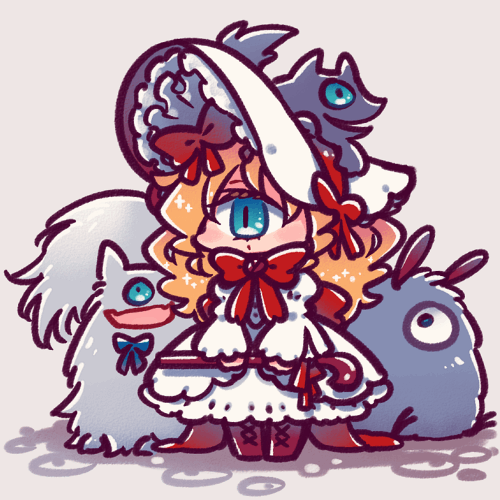 長い髪→長毛種の連想で画像検索をし、思ってたよりボサモワしてないな…尻尾はボサモワで可愛いが…の流れを経てなんか猫っぽくなりました。ホラー風味になったので黒髪にしようとも思ったけど黒ロングは旧校舎怪異さんでやったので素直に可愛い金髪、アリス配色に。ながすぎるって程の長さにできなかったかもしれん。髪を描くのって難しいねぇ。
